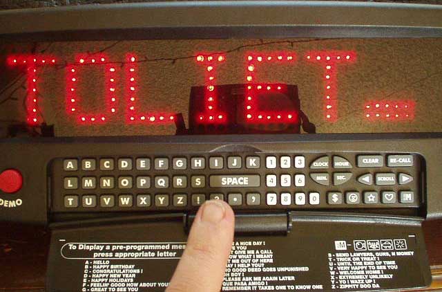 To have it display your own message, slide the Mode Select switch to the left (Input), and type your message on the keyboard. Letters, punctuation, numbers, and a handful of animated special graphics are all available. More on the special characters later.