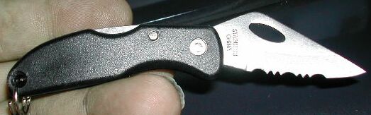 This picture shows the knife opened up, showing the serrated blade.