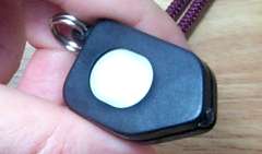 The CooLanyard comes in a number of different color combinations; the version I'm testing has a garnet colored cord and a black & grey whistle clip. That's right, I said whistle clip. When you blow into it, a loud whistling sound comes out! There is also a small white LED flashlight affixed to the cord, and a folding, serrated-blade knife hanging from the end. There is a strain relief (break-away) socket on the lanyard's back end, so you can't become choked or strangulated by it if you get all hooked up in something. This break-away socket can be reset with a simple click, so you don't have to throw the lanyard away if you get tangled in something and it breaks away.