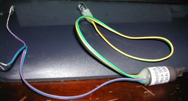 The DigiTronics Micro Strobe is an enclosed circuit with an red-orange 5mm LED at the end of an 8" cord. This LED blinks, and a set of AA alkaline cells should last for months.