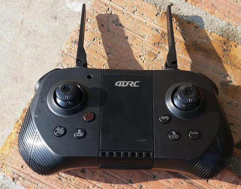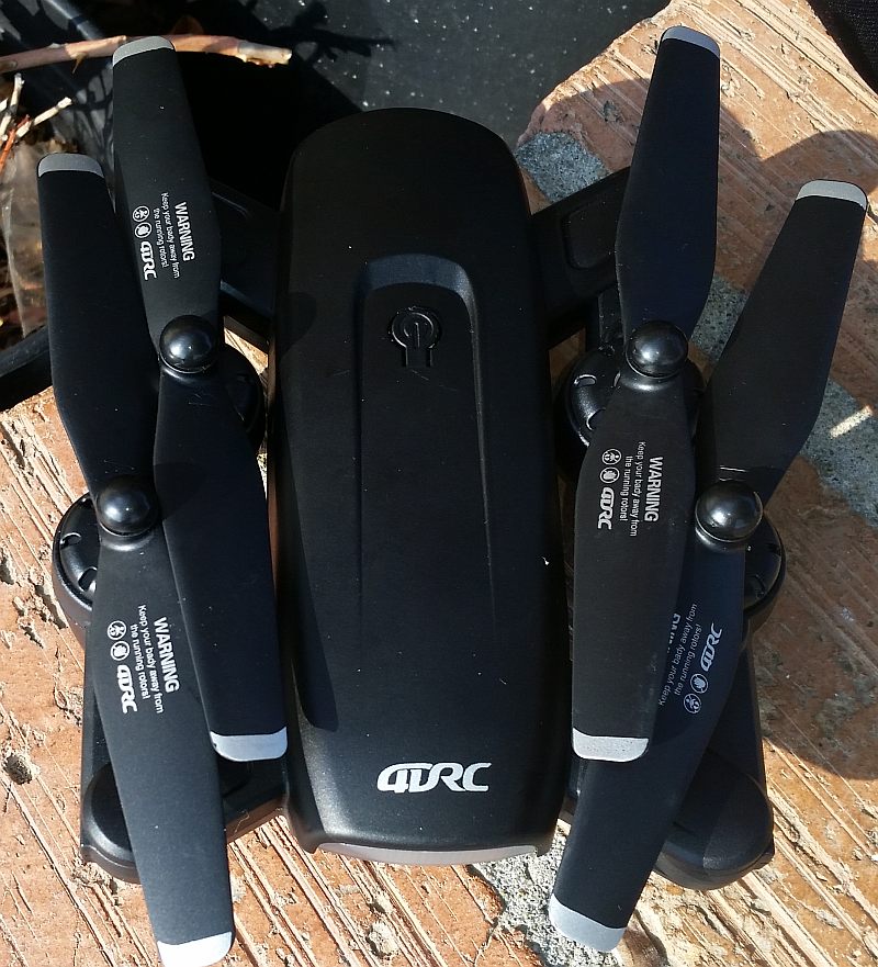 The 4DRC F6 4K GPS Drone (hereinafter, probably just called the 4DRC F6) is a mid-sized (12.90" sq. x 2.30"), surprisingly light (192g {6.77oz.}) drone that features GPS stabilisation, a rechargeable 2S (two cell) 1,600mAh Li:Po (lithium polymer) flight battery, and the ability to tilt the camera's lens over a 45° range -- from pointing forward and slightly down to pointing farther down.