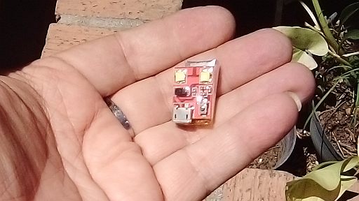 But when I turned the drone rightside-up and performed a cursory examination, something very queer caught my eye. The white dual-Cree strobe was now one white LED and one sky-blue LED.