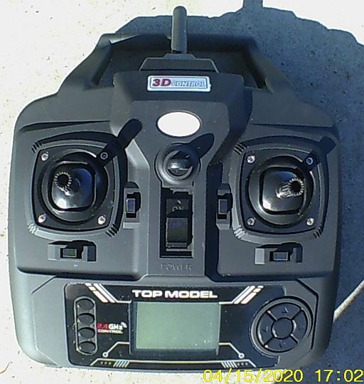 This drone appears to be going down the tube; it fails to accept commands (stick movements) from its radio much like the flight that I made on 09-09-20; I installed six brand spanken new AA cells before the last flight *AND* I power-cycled the radio but that wasn't "it". :-(