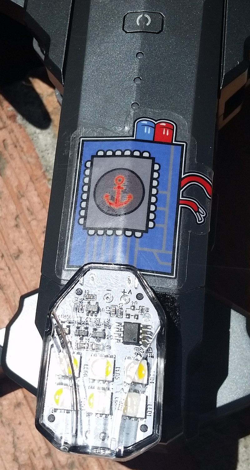 6: The front white LEDs (near the ends of the front pylons) should now glow steady white.