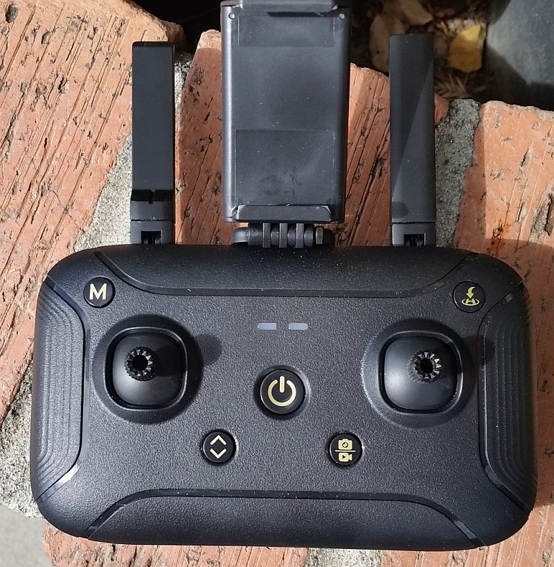 This is a small, lightweight (264g), easy-to-fly 4-channel, brushless motor remote-controlled outdoor (and indoors with sufficient space) drone that has a gimbal, and has advanced features like GPS tracking, follow-me mode, orbit mode, waypoints, etc. Its remote uses RF (radio frequency) radiation at 2.4GHz to communicate to and from the drone.