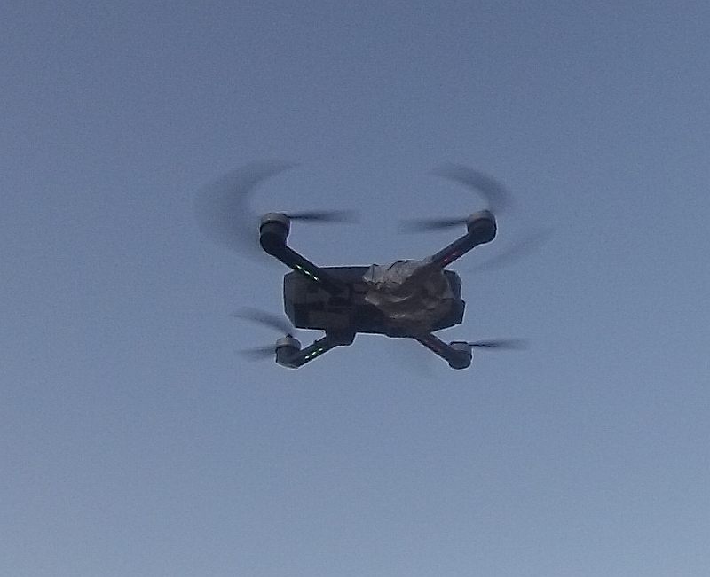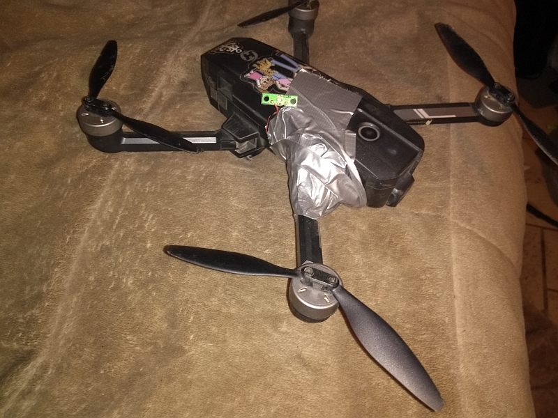 Here is a photograph of the temporary repair of the drone while it was flying that I offer as proof that the repair was indeed successful: