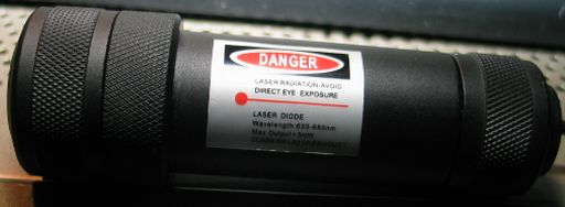 The laser warning label appears to be accurate, both for wavelength and power output. It is labelled as a Class IIIA laser product, which is indeed correct.