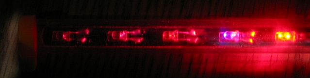 Photograph of the red LEDs illuminated. Spectrographic analysis