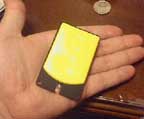 The ATM card sized flashlight comes with an amber LED and a built-in slim lithium cell. It is mostly made of a black plastic, with