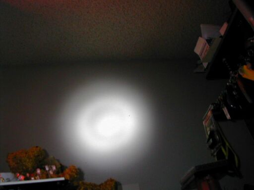 The Epieon bulb uses a HD (High Dome) or Lambertian Luxeon Star LED, so it can effectively use the reflector of whatever flashlight you use it in. The flashlight I'm testing the 2-cell model in is of unknown age or pedigree. It has a partially faceted reflector (the upper portion is faceted), and I get a pretty OK beam out of it. The beam could be better, but it could be a whole lot worse too. The beam you get will depend mainly on what flashlight you put it in.