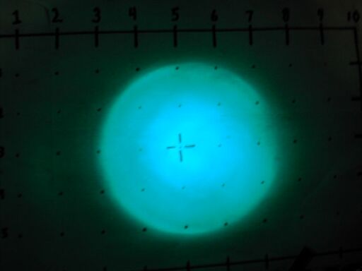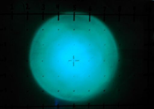 The beam is circular with a more abrupt edge than is usually seen in clear bodied 5mm InGaN (indium gallium nitride) LEDs.
