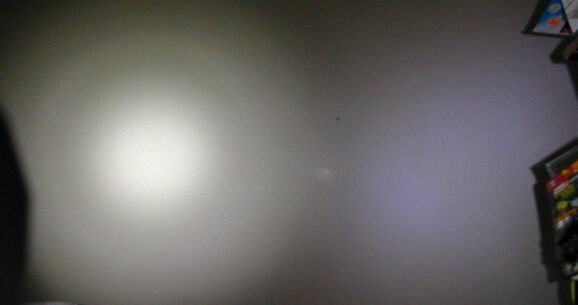 The light output is different from other Tektite LED flashlights, because this one uses the fairly new Luxeon Star high-powered LED and a Fraen 30mm optic made specifically to fit over these LEDs. The beam of this flashlight features a central hotspot, surrounded by a weaker (but still bright) corona. The light from the tested unit is a pure snow white, not that "rotten cat urine green" color sometimes found in some other Luxeon Star flashlights. The LEDs are probably being sorted by hand, specifically to avoid one that has that yucky rotten pee color. The good ones most likely end up in these flashlights, and I don't know where the bad (green) ones are going.