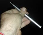 To change the batteries in this laser, unscrew the unit's tail end (where the pocket clip is), remove the used AAA cell from it, and dispose of, recycle, or recharge it as you see fit, and set the tail end aside.