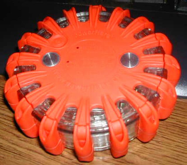 The PF-200 PowerFlare is designed to be a replacement for the old fashioned and dangerous incenindairy (fire-using) road flare. Instead of some flammable chemicals in a stick, the PowerFlare uses 16 LEDs, which have 9 patterns you can choose from; this is designed to attract attention to a roadside problem, house or apartment problem, boating problem, or just for cool special effects at dances and raves.