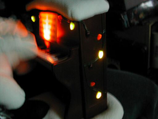The unit has 11 LEDs in it: one yellow LED lighting up the "sheet music", and Christmas bulbs with three red, three yellow, and four yellow-green LEDs behind C7 1/2-shaped lenses around the right side and front of the piano.