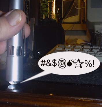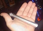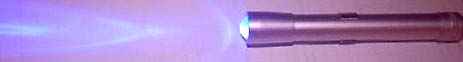 In this picture, I threw in a blue-violet Kingbright. I also ran around with a violet LED in it for several days, blasting various objects around the house to watch them glow.