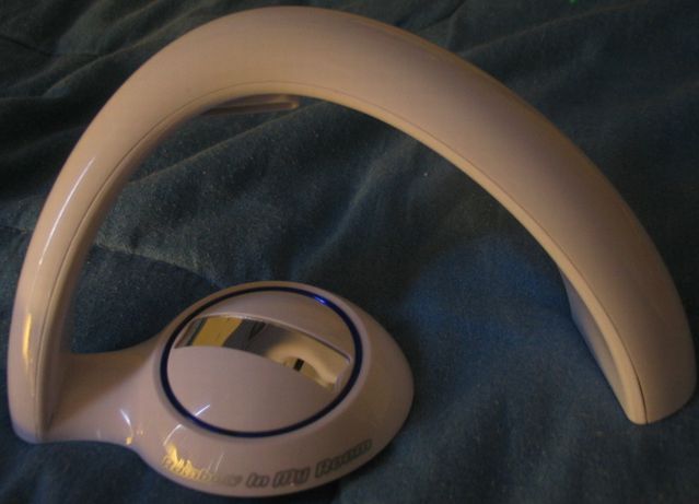 This is a nifty little projector that shines a rainbow on your wall or ceiling. It uses a linear array of five differently colored LEDs (in the curved arm at the top of the device) and a curved mirror on the top of the base to accomplish this; there no hot, fragile, and dangerous incandescent light bubs to fuss with or electric cooling fans to keep you awake at night.