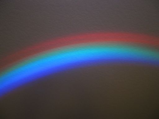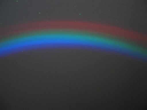 Photograph of the projected "rainbow" on a ceiling at ~6 feet.