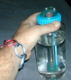 I said this one time before, but I'll say it again for safety sakes. The AquaStar™ bottle is not douchewasher-safe; handwash the bottle with a mild detergent and water prior to first use and whenever it needs to be washed. Clean it and store it in a dry environment when not in use. The bottle itself is made of polycarbonate, so it *MIGHT* do alright in the top rack of a dishdoucher, but I cannot guarantee good results here.