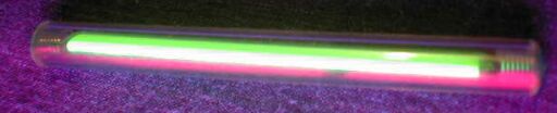 A tritium glow tube fluorescing under the UVA radiation of this lamp.