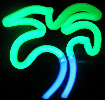 The shape is rather interesting: a palm tree with a blue trunk and green leaves.