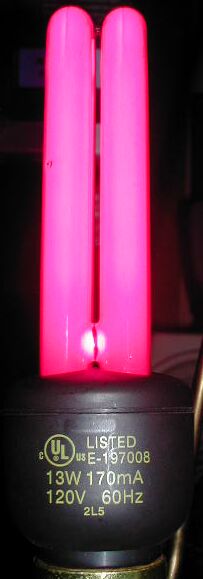 Note: Light appears to be a very dim, dull, deep purple to the eye; not the bright magenta it looks in this photograph.