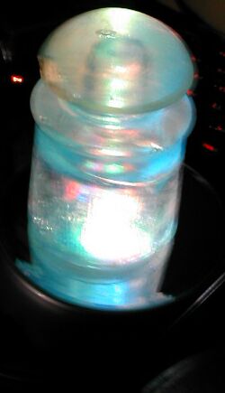 And here's the same insulator on the lamp, with most of the other lights turned off.