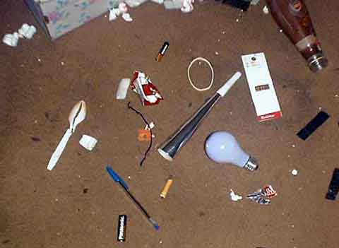 Almost everything here has to be fucking picked up by hand. The batteries, the light bulb, the bread bag clip, the bottle, the pack of resistors,