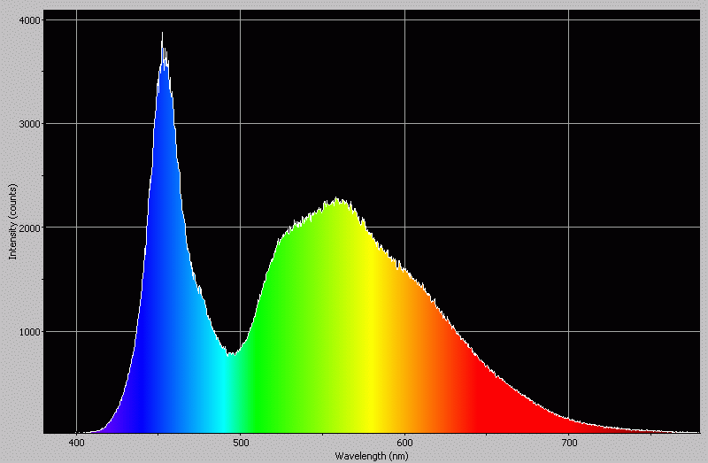 Spectrographic analysis of the LEDs in this flashlight; yet newer spectrometer software & settings used.