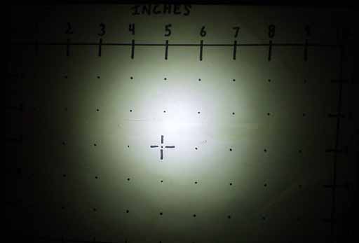 This is yet another example of Kevin's professional work. The emitter is centered properly, and the whole "sandwich" is sealed in epoxy for additional strength and durability. The beam is well-centered, and free from any nasties like shadows or irregular hot spots.