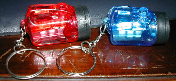 The LEDSupply Mini Keychain Lanterns are very inexpensive LED flashlights that use a Nichia white LED and three LR44 button cells. They are currently being offered on Ebay by LEDSupply, and can be had very inexpensively.