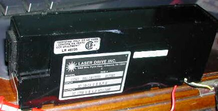 Here is the laser & power supply itself. It's approximately 6" long, 1.25" wide, and 2.25" high. It's quite small for a HeNe plasma laser with integral power supply. :-)
