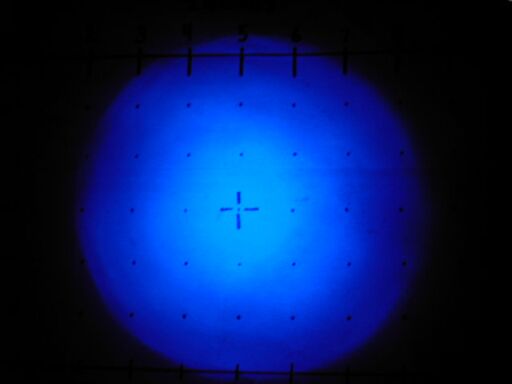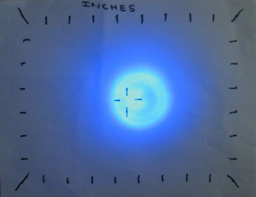 Bright, slightly irregular beam characteristic of this LED type.