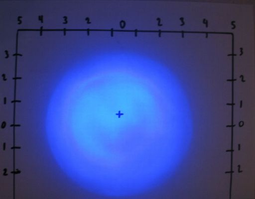 I've seen a lot of Nichia's blue LEDs, in a number of shapes, sizes, and beam configurations. But this is the bluest one I've come across. This is their standard issue 15° 3000mcd blue model, but it comes from the bluest bin in the factory and also seems a tad brighter than their usual run.