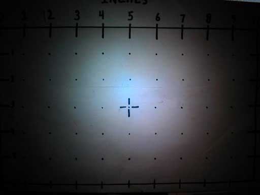 Here's a closer look at that pissed-off blue color. Note the reflection near the top where you can see one of the white LEDs giving this color off. The target used for this picture was a white styrofoam coffee cup.