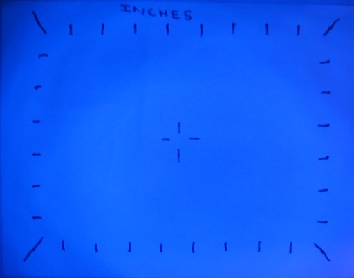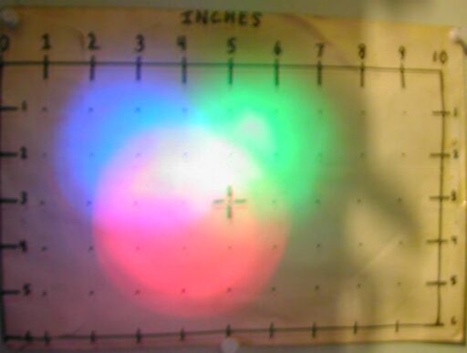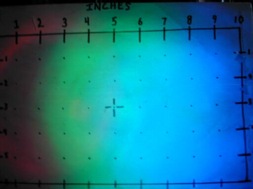 Beam photograph on the test target at ~12" (blue die).