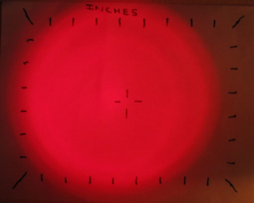 Beam photograph on the test target at ~12" (red die).