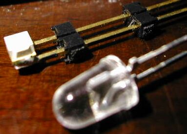 to this LED, and a test hookup using component leads clipped into the test set was unsuccessful, as the leads were still too large to manipulate