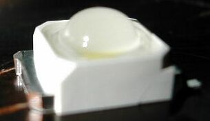 This is Nichia's latest LED to show up in the high-powered LED wars. This is labelled as a SMD LED, even though it seems large for an SMD component. But it has a flat base with the leads going off to the sides, so it can indeed sit flush on a PCB or what have you.