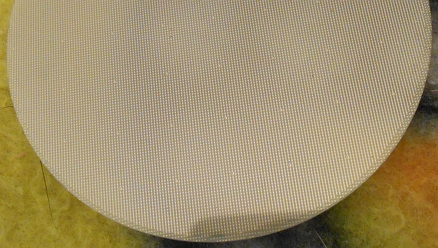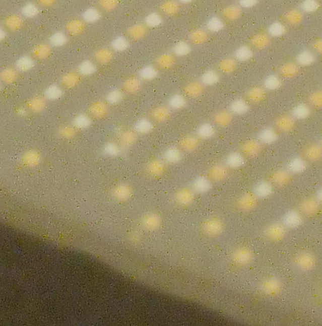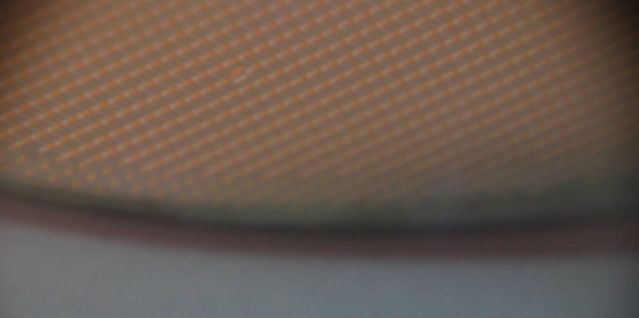 Here's another close-up of the wafer's surface, showing some of the LED mesas (6x macro plus a positive {magnifying} lens held in front of the camera's own lens.