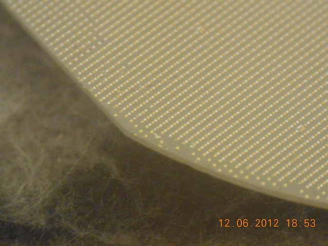 The photographs below show the LED "wafer" - what you see before getting to the finished LEDs.