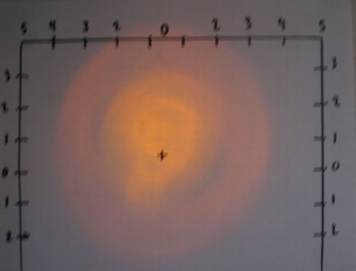 Beam profile on this unusual lamp. The broken camera simply couldn't focus well enough to capture the finer details.