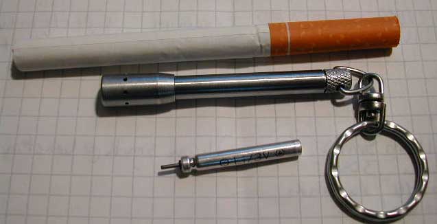The all-metal flashlight is smaller than a common cigarette, and probably better for your health too.