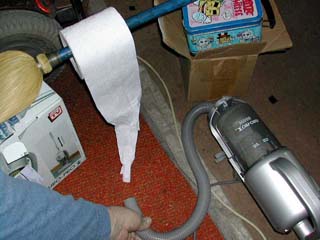 where they hook up the Stick Shark to 65 feet of clear pipe and have it vacume up ribbons from the other end. It's pretty cool to watch, but nothing an ordinary bag-first or tank-first type cleaner can't do.