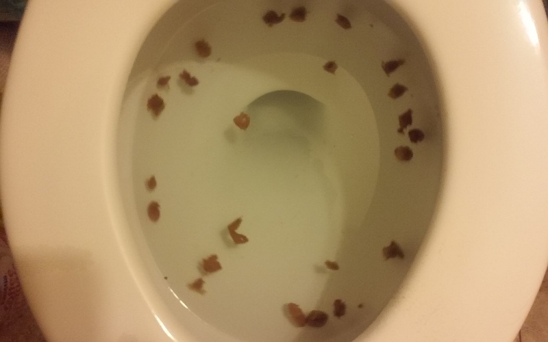 This kind of shit is so big it plugs up the toilet and it overflows all over the floor. (You should have followed the