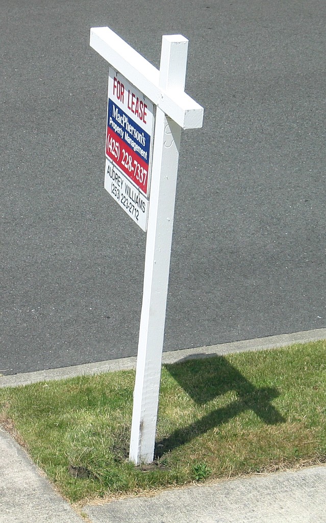 Saw this stuck in the front yard yesterday morning; the leaseholder officially gave the landlord 30 day notice a couple of days ago. So moving soon is not just a probability, it's a certainty now.