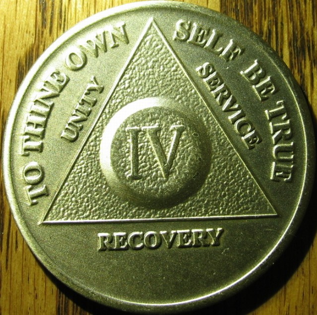 The 4-year "chip" that my sister Angie got from AA this last Friday night (02-26-10) for having 4 full years clean and sober!!!