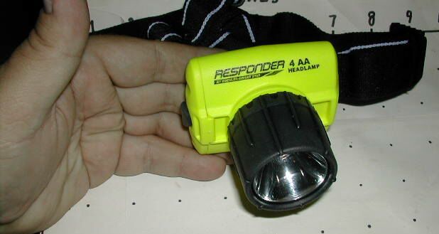 The Responder 4 AA cell headlamp is, well, a 4 AA headlamp. Built from a sturdy, chemical-resistant material, it is submersible to 100 feet and is UL listed for use in hazardous environments. While the unit I'm testing is equipped with an LED lamp, it can also be used with an incandescent PR-base bulb for added versatility when you must have the extra brightness provided by a regular bulb.