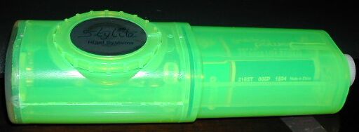The Skylite by Rigel Systems comes in a few different variations, this one comes in a day-glo green case and has 2 white & 2 red LEDs. A dial on the side lets you adjust the brightness of the white or the red LEDs, and allows you to switch between the two colors as well. The Skylite also comes with a 20" neck cord, but since the loaner sample I got from somebody didn't come with it, I can't test it or even take a picture of it.