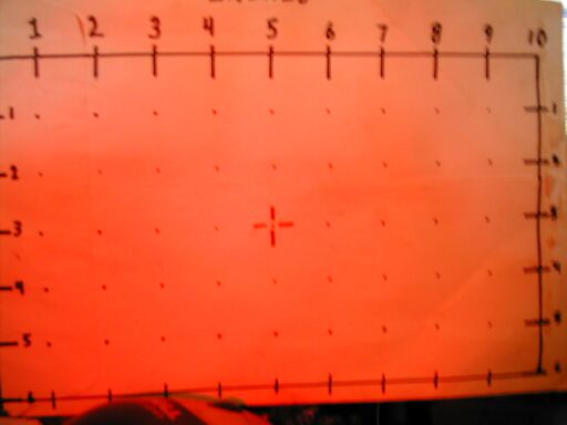 Beam photograph at ~12" (Red LEDs).